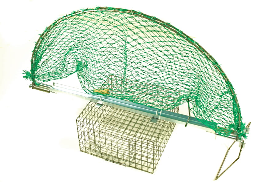 mogućnost korištenja živog mamca unutar zamke, poput goluba, zahvaljujući metalnom kavezu smještenom ispod hvatača.